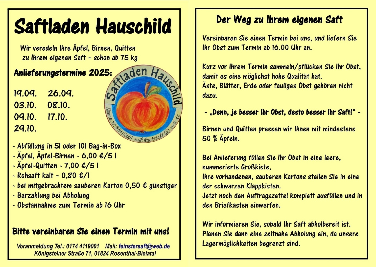 Fax 035973 25999 und WhatsApp, auch für Bestellungen etc: 0152 5267 4034