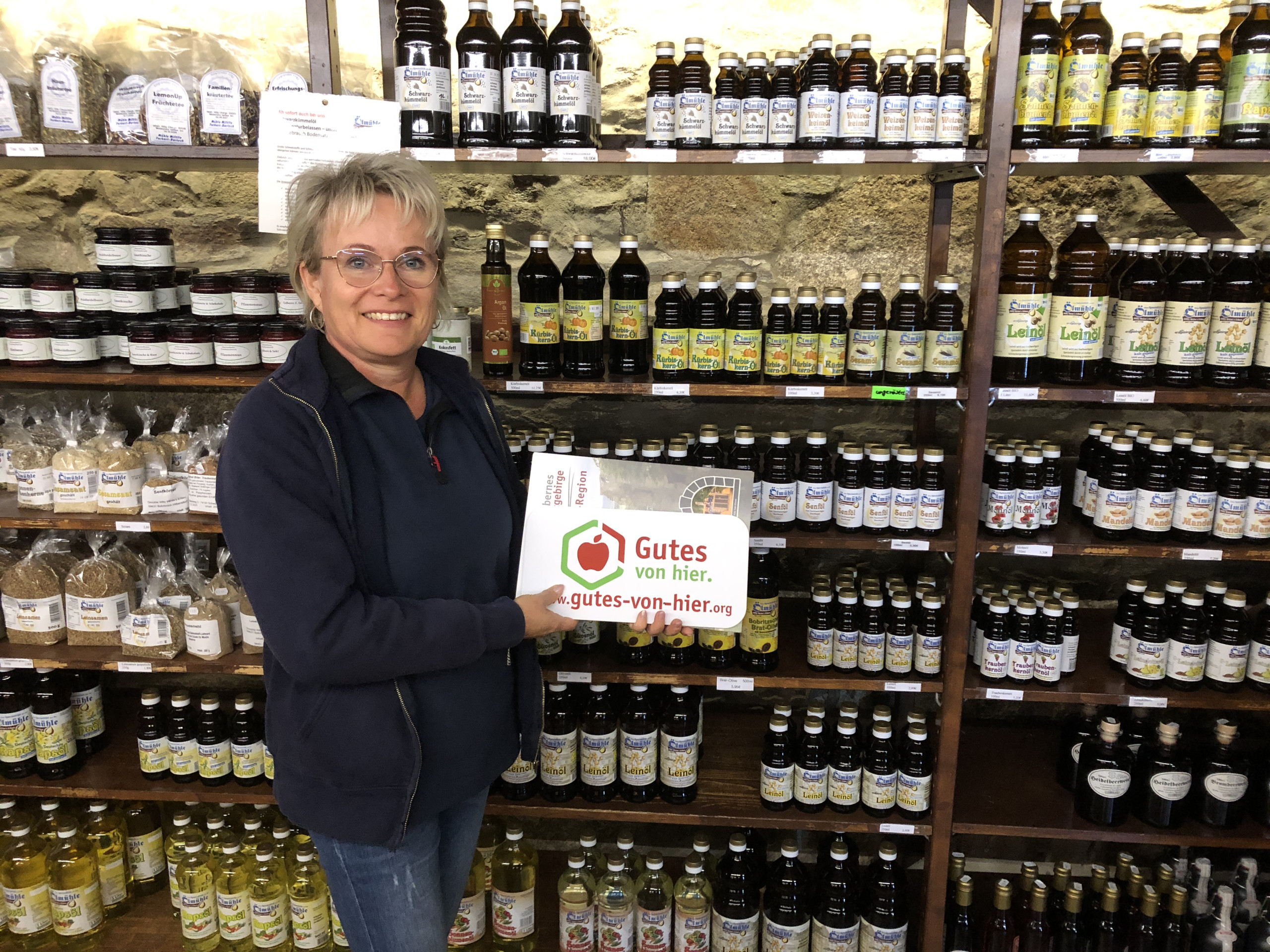 Unser Mühlenladen bietet eine Auswahl von ca. 20 verschiedenen kaltgepressten Ölen aus eigener Herstellung sowie weitere regionale Produkte und auch Futtermittel für das liebe Vieh.