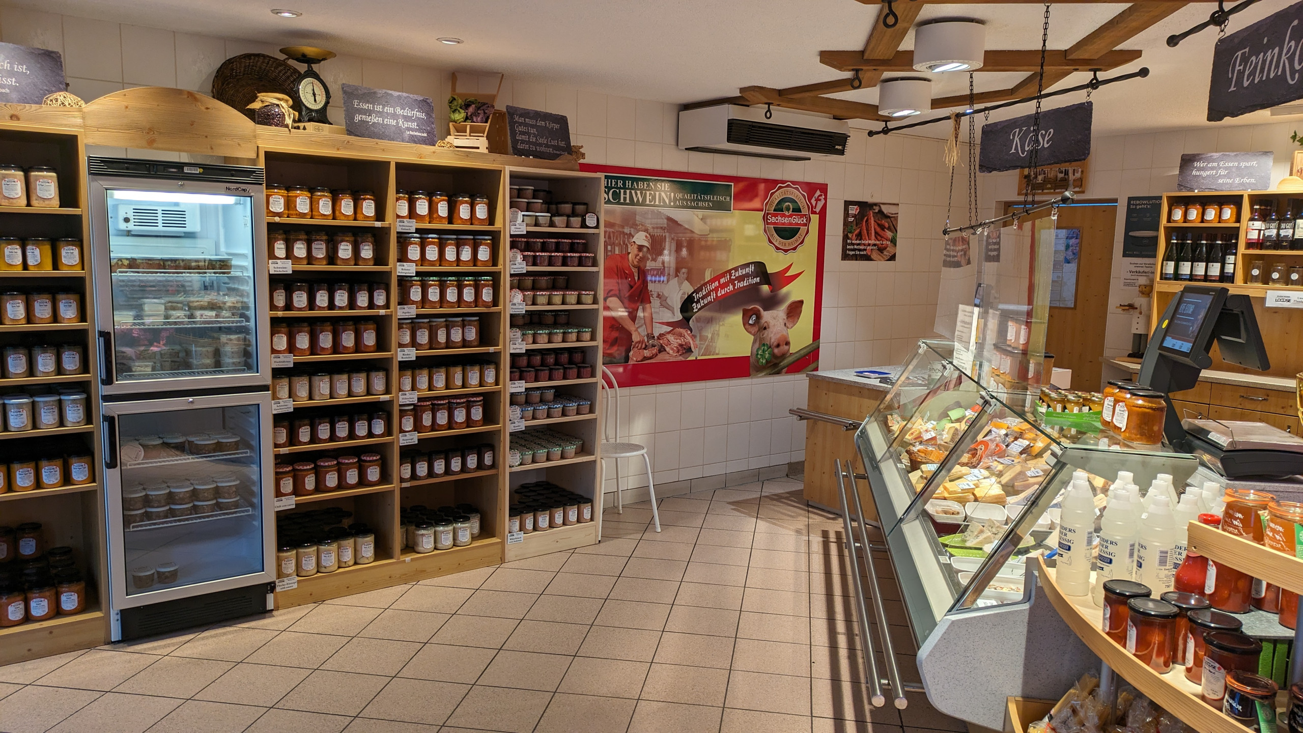 Der Meister selbst übernimmt hier die sorgfältige, fachgerechte Zerlegung und Verarbeitung direkt in im Landschlachthof. Dadurch werden Ihnen hochwertige Fleisch- und Wurstspezialitäten zum fairen Preis angeboten. Im Angebot sind auch Käsespezialitäten vom Milchhof Fiedler aus Dorf Wehlen.